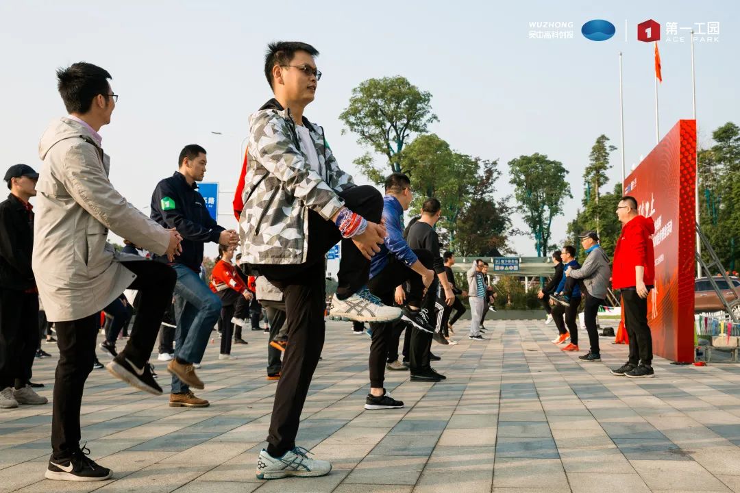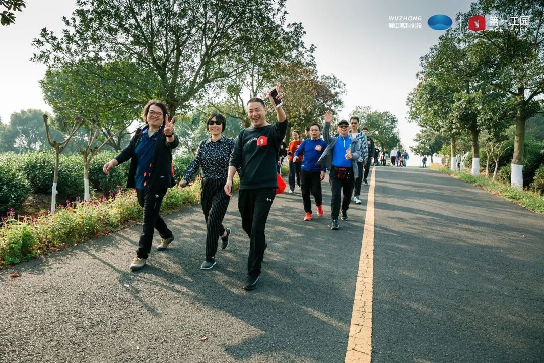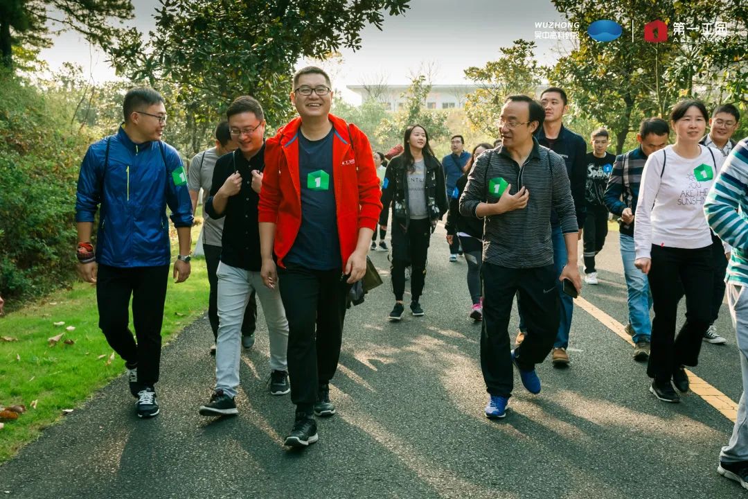 清晨,大家在出發(fā)點(diǎn)集合熱身。吳中高科副總經(jīng)理、第一工園總經(jīng)理劉健發(fā)表徒步動(dòng)員講話,他希望大家在本次活動(dòng)中發(fā)揚(yáng)團(tuán)隊(duì)精神、磨練意志,以在2020年度剩余的50天中朝著全年目標(biāo)全力以赴、奮戰(zhàn)到底,續(xù)寫第一工園的“第一精神”。