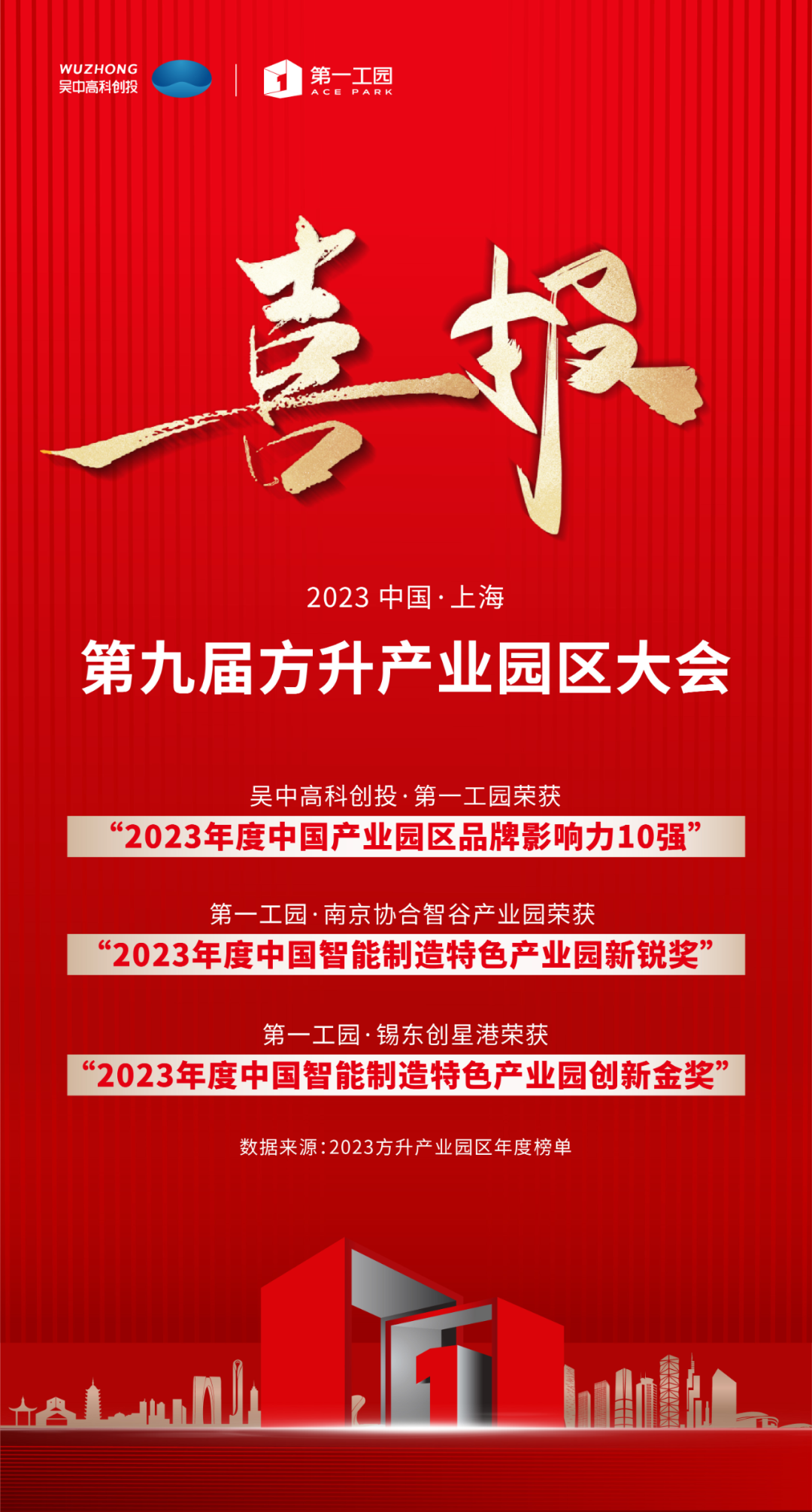 2023年7月12日,由方升研究主辦的“2023第九屆方升產(chǎn)業(yè)園區(qū)大會(huì)”于上海圓滿落下帷幕,會(huì)上發(fā)布了《2023年度中國(guó)產(chǎn)業(yè)園區(qū)品牌影響力10強(qiáng)榜》。吳中高科創(chuàng)投·第一工園憑借在品牌競(jìng)爭(zhēng)力、品牌影響力及品牌傳播力上的綜合表現(xiàn),榮獲“2023年度中國(guó)產(chǎn)業(yè)園區(qū)品牌影響力10強(qiáng)”,旗下項(xiàng)目第一工園·錫東創(chuàng)星港榮獲“2023年度中國(guó)智能制造特色產(chǎn)業(yè)園創(chuàng)新金獎(jiǎng)”,第一工園·南京協(xié)合智谷產(chǎn)業(yè)園榮獲“2023年度中國(guó)智能制造特色產(chǎn)業(yè)園新銳獎(jiǎng)”。