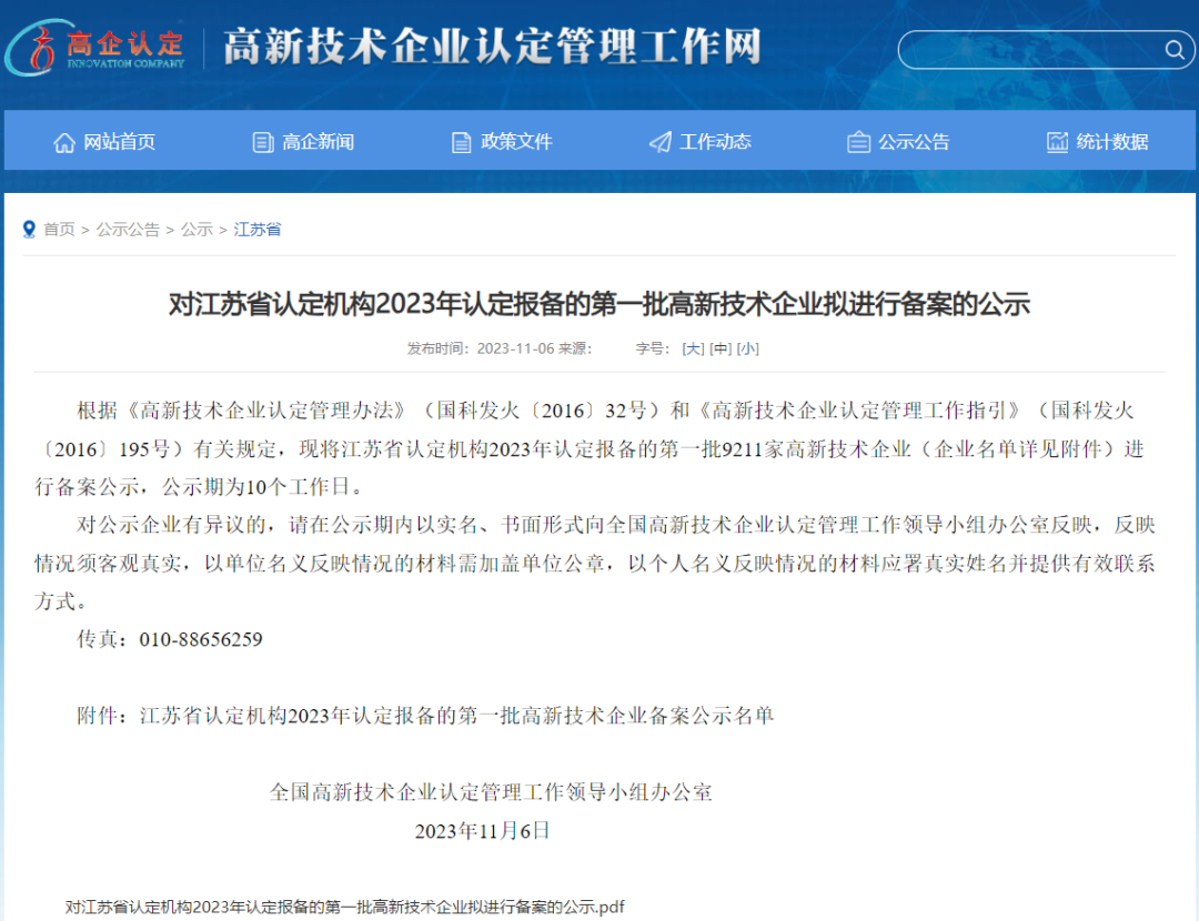 第一批高新技術企業備案名單公示